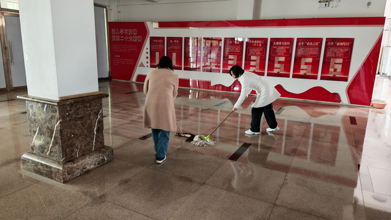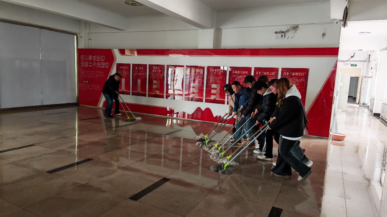 活動伊始,支部負責人對清掃活動進行了細致分工,明確了各小組的負責區域,涵蓋了教學樓分擔區內多處易被忽視的衛生死角,如樓梯周邊、教學樓大廳等區域。