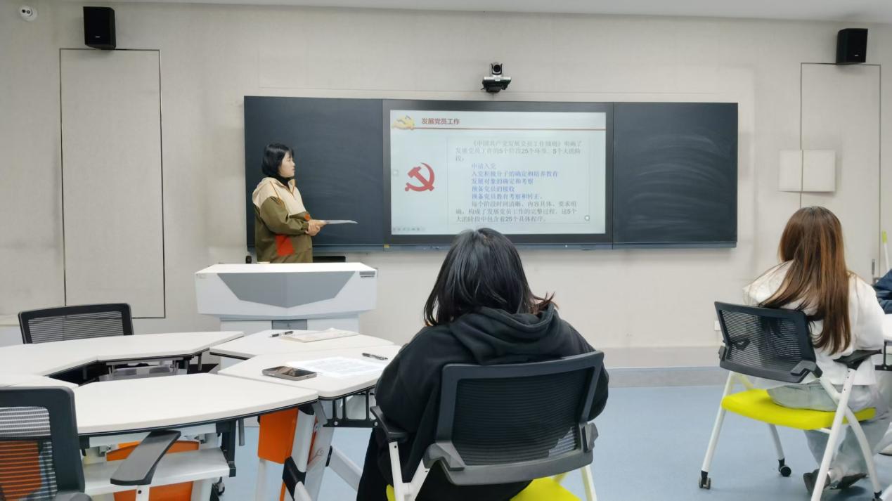 積極分子培訓以黨的基本理論、路線和綱領(lǐng)為核心,系統(tǒng)安排了《中國共產(chǎn)黨章程》解讀、入黨程序與文書規(guī)范等課程。王義剛書記通過專題授課,帶領(lǐng)學員逐章逐句學習黨章,強調(diào)“黨章是黨的根本大法,是黨員行動的指南”;組織員李一平老師結(jié)合案例詳細講解入黨流程,要求學員“以嚴謹態(tài)度對待組織程序,以赤誠之心追求信仰”。思想政治理論課教師姜春田圍繞中央八項規(guī)定精神開展作風建設(shè)教育,結(jié)合新時代全面從嚴治黨要求,引導學員“從入黨之初便樹牢紀律意識”。