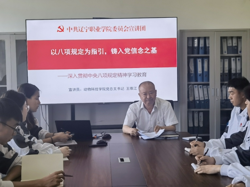 為進一步推動深入貫徹中央八項規(guī)定精神學(xué)習教育向青年群體延伸,鑄牢入黨積極分子理想信念、強化責任擔當,培育優(yōu)良學(xué)風,動物科技學(xué)院黨總支書記王維江在黨員活動室,為入黨積極分子講授了《以八項規(guī)定為指引,鑄入黨信念之基——深入貫徹中央八項規(guī)定精神學(xué)習教育》專題黨課,為入黨積極分子扣緊思想“第一粒扣子”。