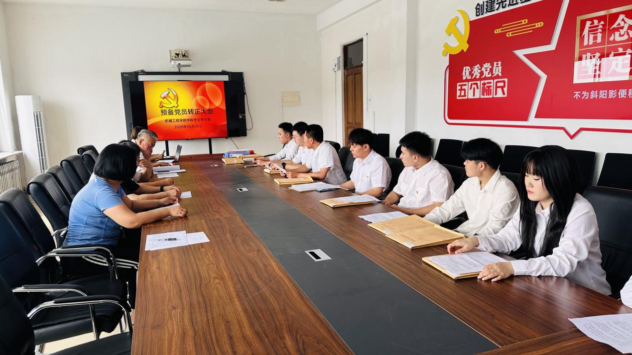 2025年6月26日,機械工程學院學生黨支部召開黨員大會,經支部大會討論和無記名投票表決,12名預備黨員全部通過轉正申請,如期轉為中共正式黨員。