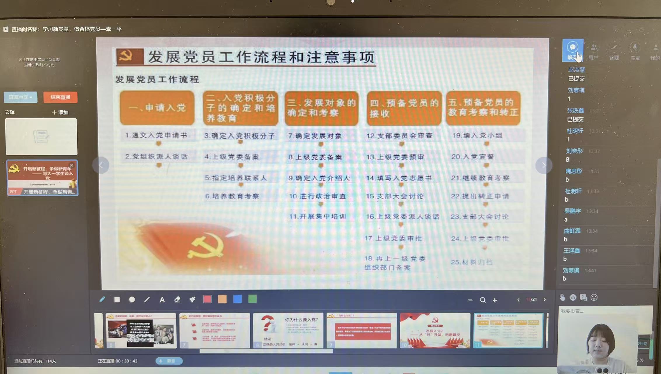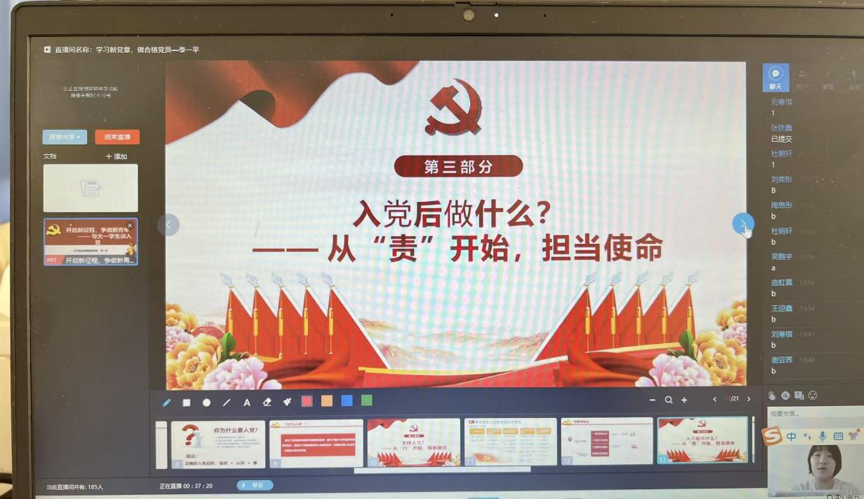 為加強大一學生理想信念教育,引導青年學子堅定不移聽黨話、感黨恩、跟黨走,11月14日,財經學院分黨校依托學習通平臺線上開講“開啟新征程,爭做新青年——與大一學生談入黨”專題黨課。本次黨課由學院黨總支組織員李一平主講,25級學生參與學習。
